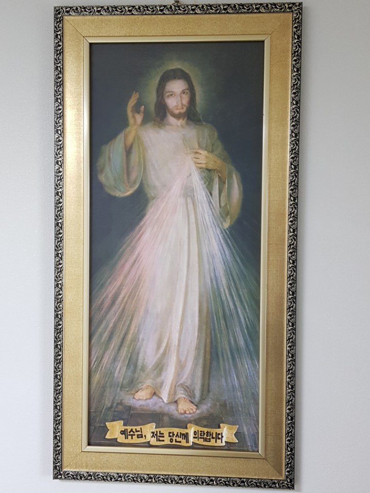 큰 액자의 예수님 상본도 함께 모두 무료로 신부님께서 나누어 주셨답니다.