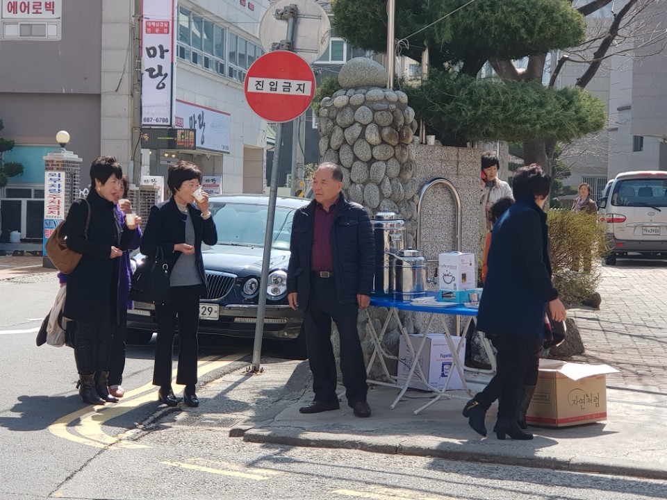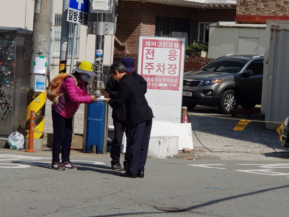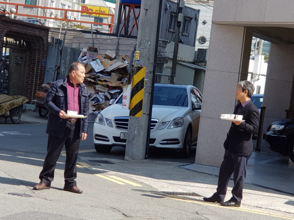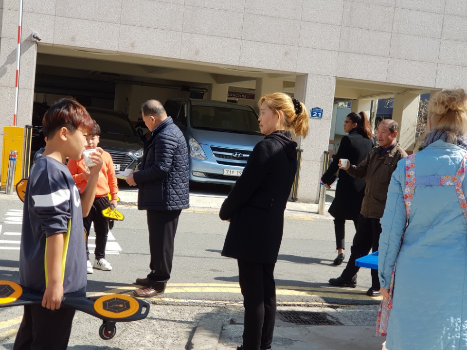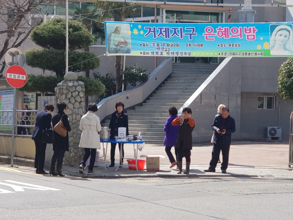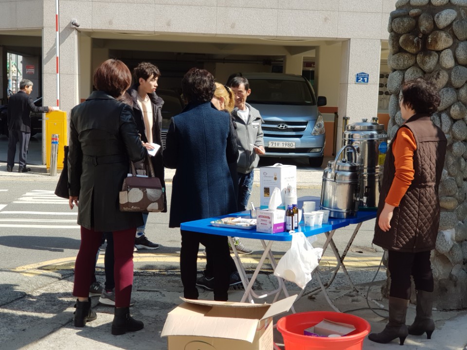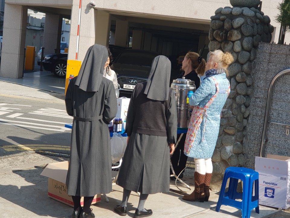 두 시간동안 성당앞을 지나가시는 시민들중 80% 이상이 함께 차를 나누시고요