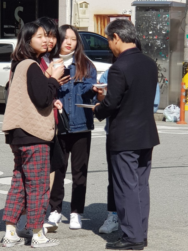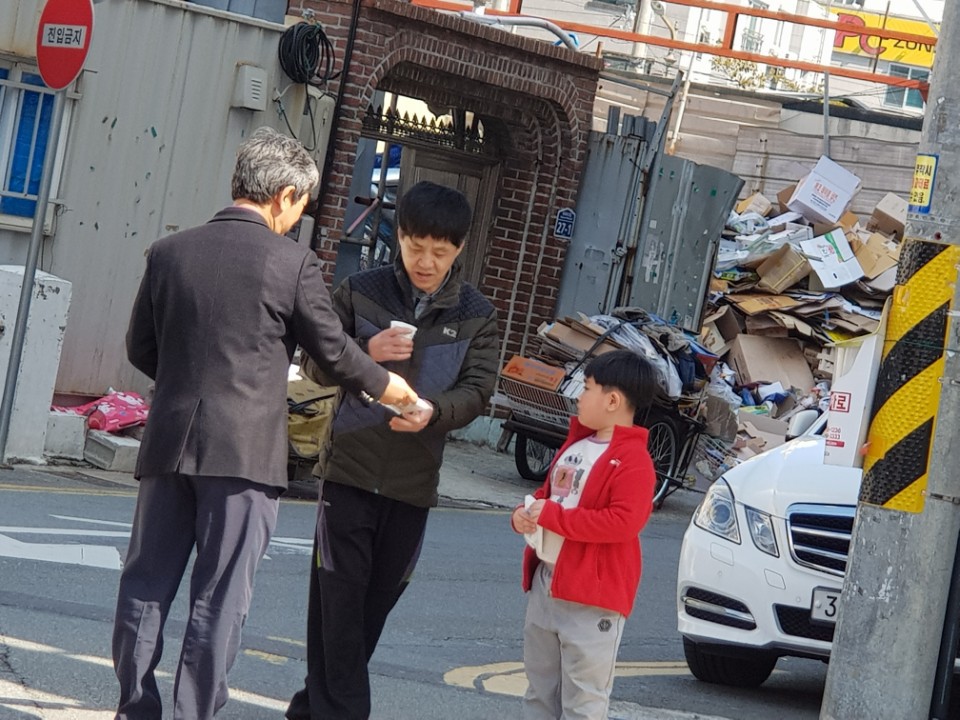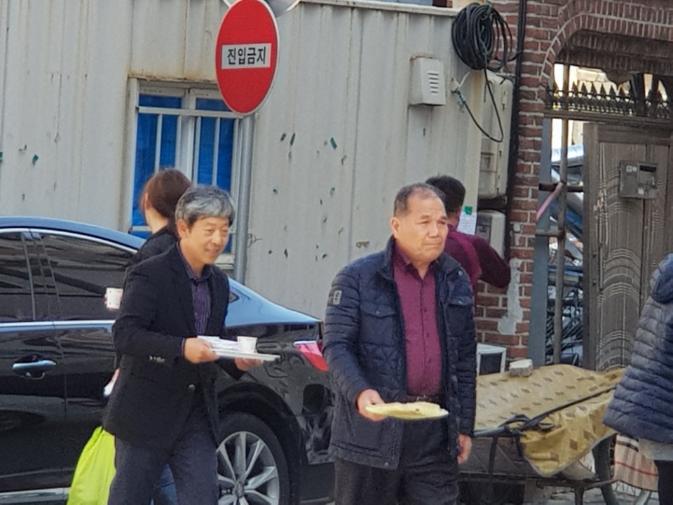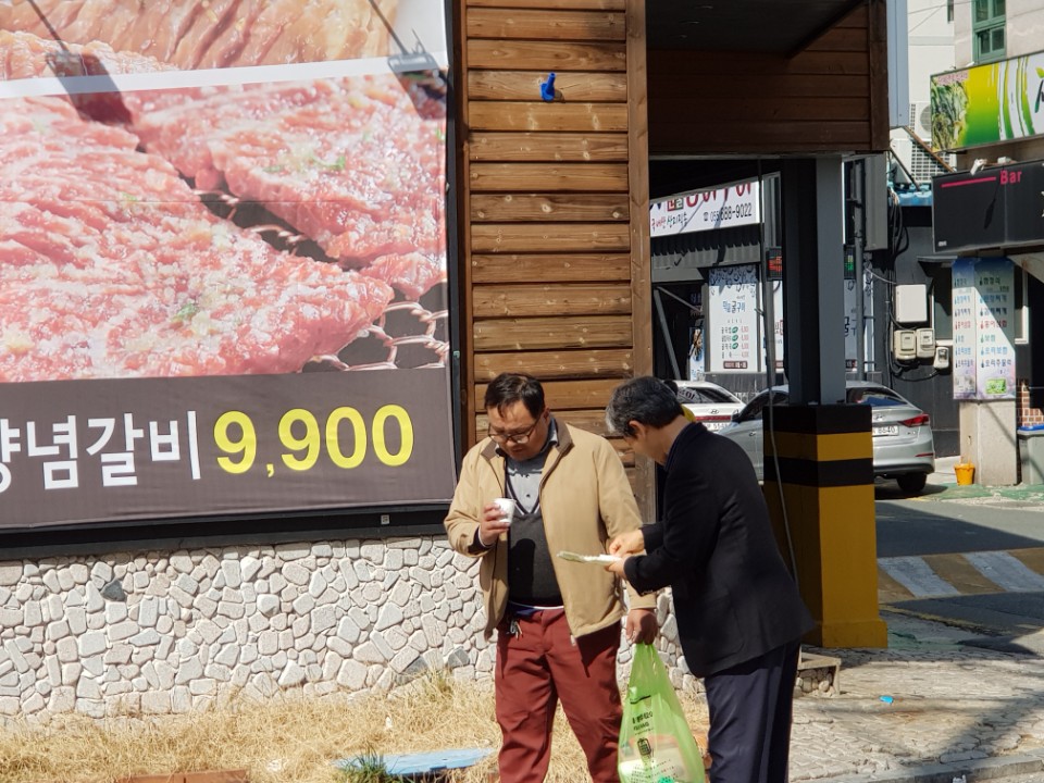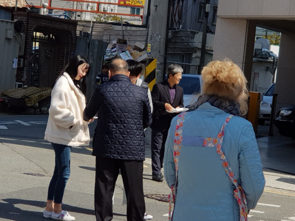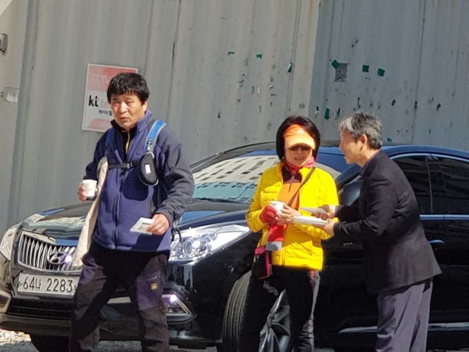 두 시간동안 성당앞을 지나가시는 시민들중 80% 이상이 함께 차를 나누시고요