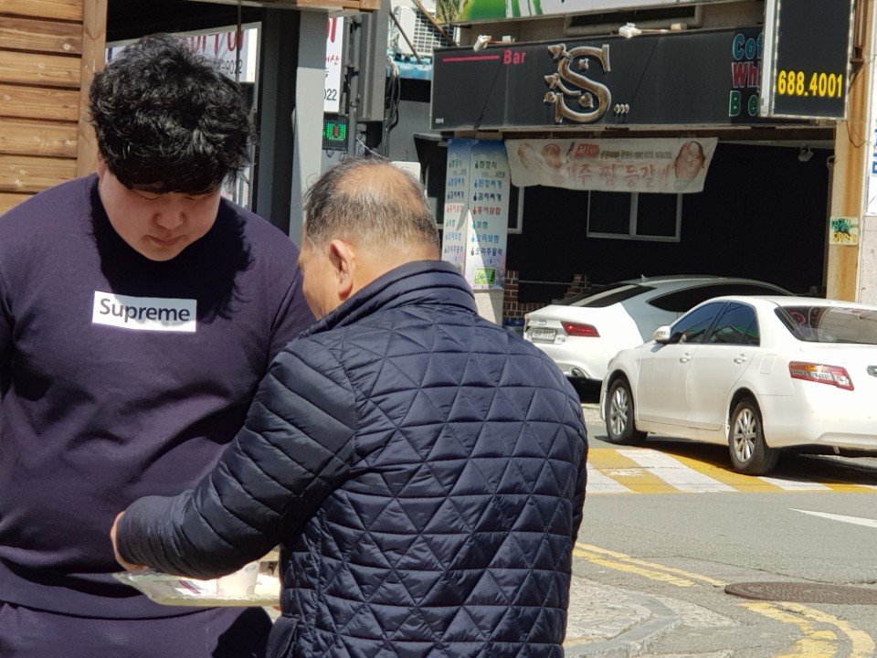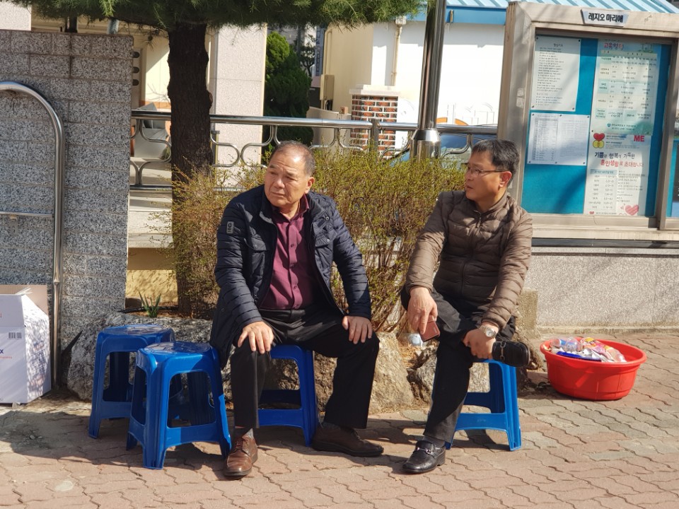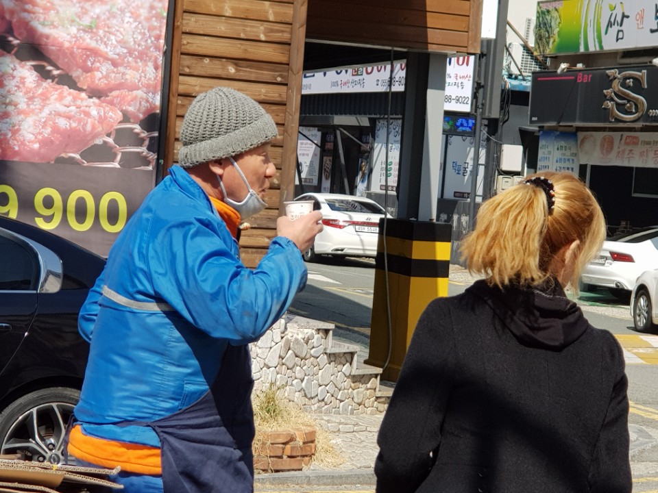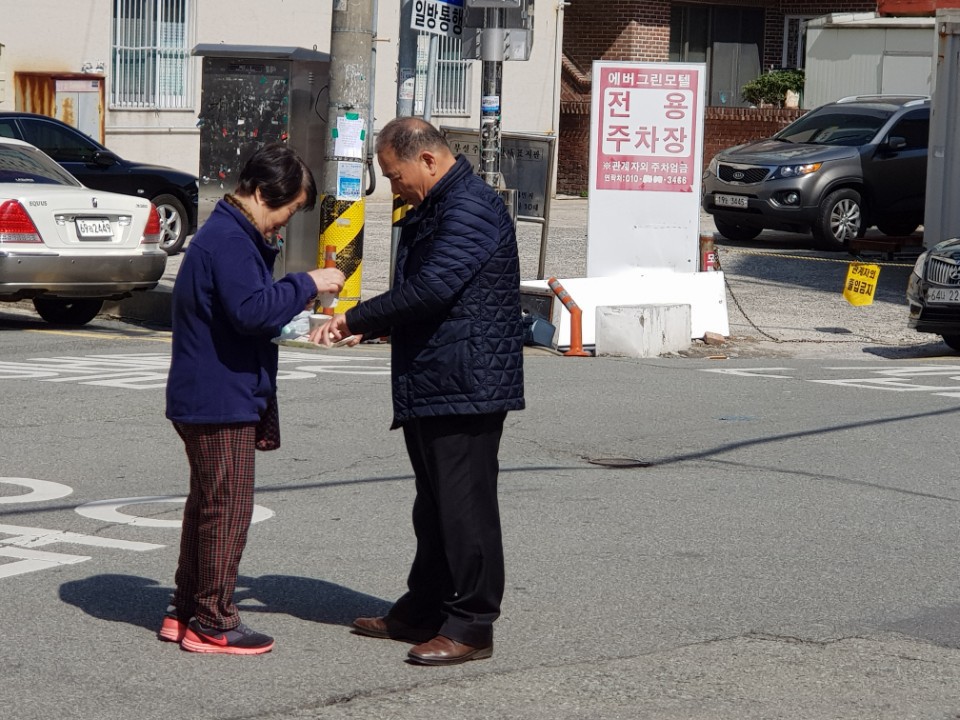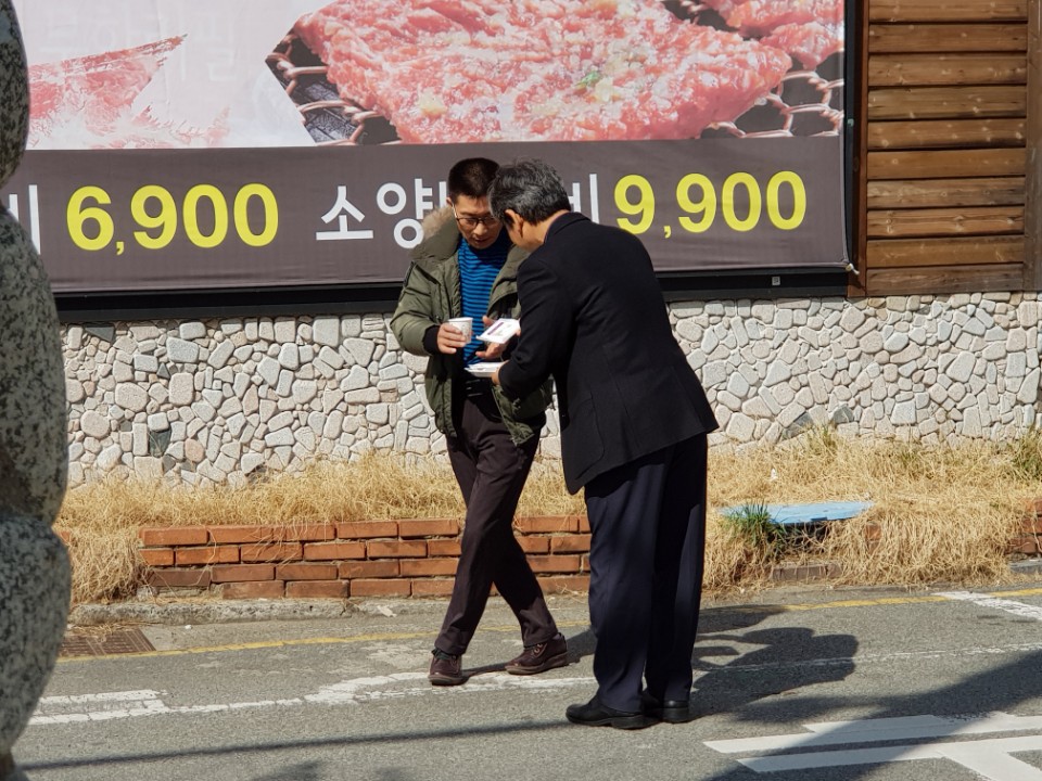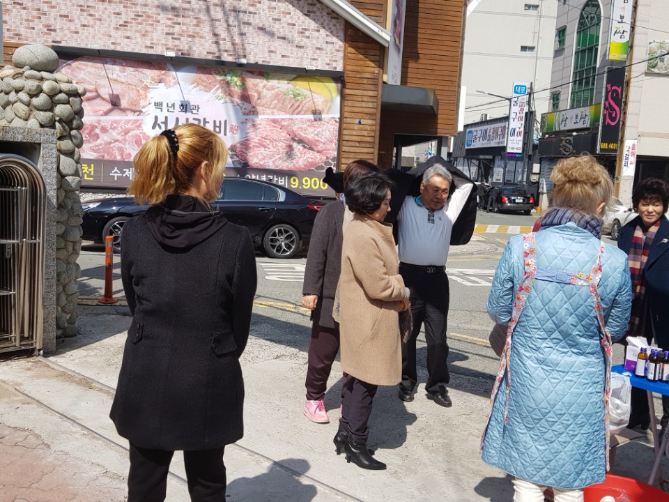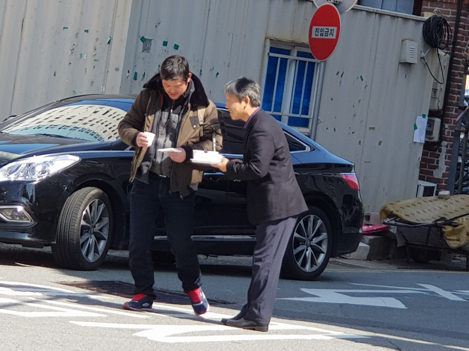 두 시간동안 성당앞을 지나가시는 시민들중 80% 이상이 함께 차를 나누시고요