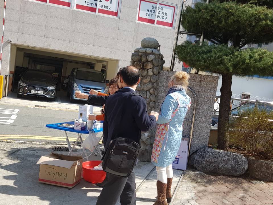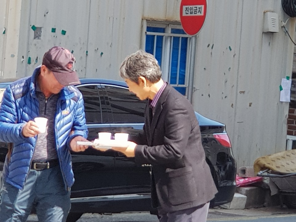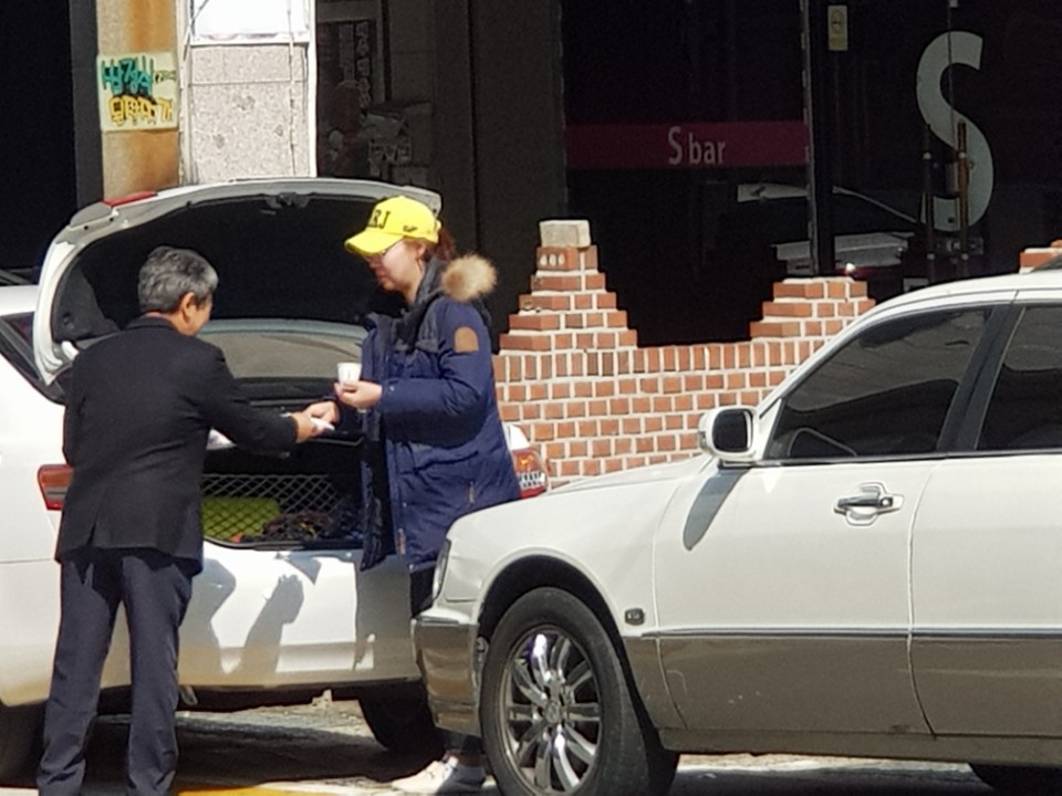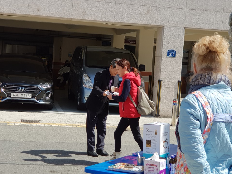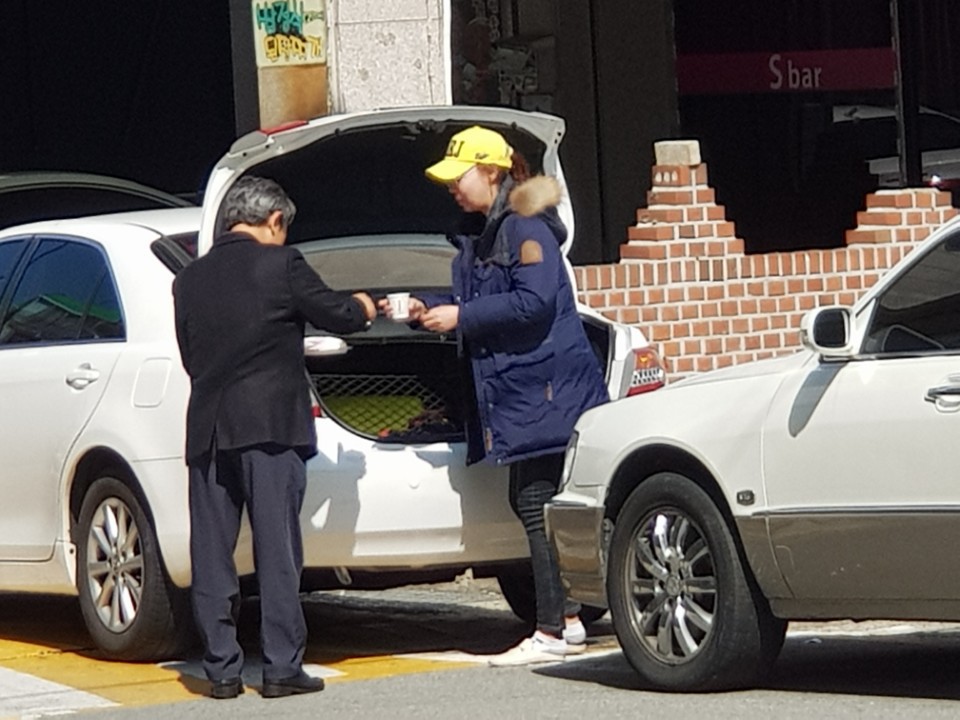 또 성당앞을 지나가는 차량을 상대로 차나눔 시간을 가졌습니다.