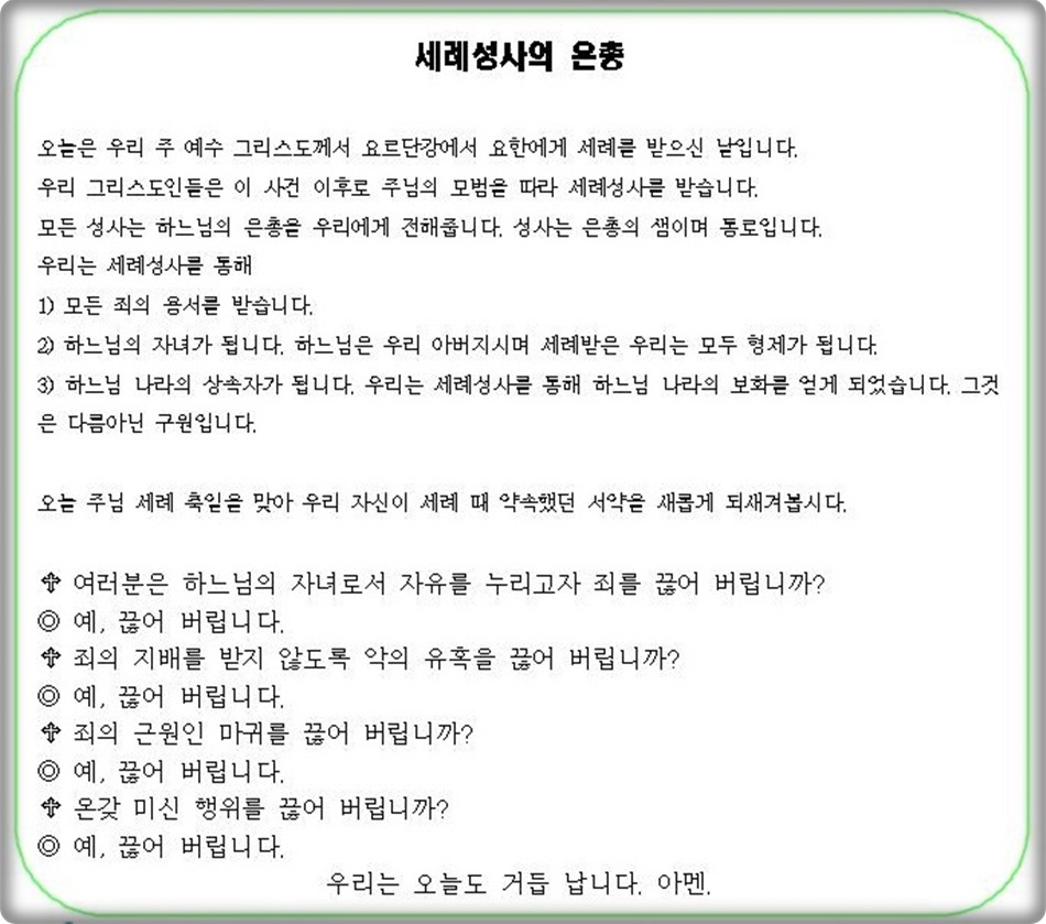 주님 세례 대축일 교중미사 중에 환영식이 있었습니다. 신부님의 영육간의 건강을 위하여 기도합니다.