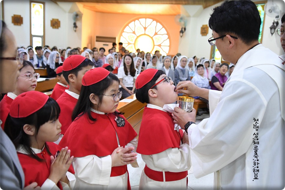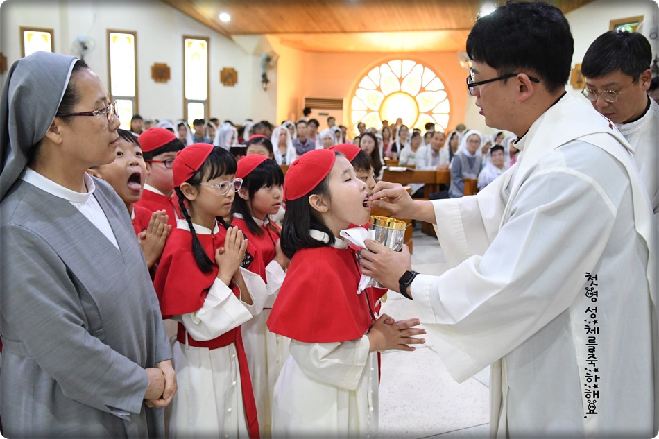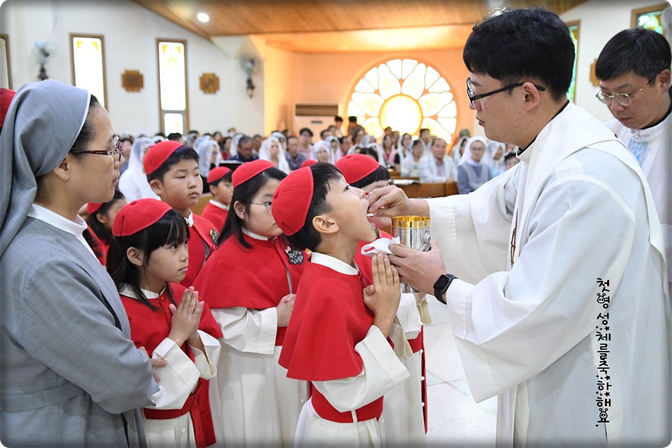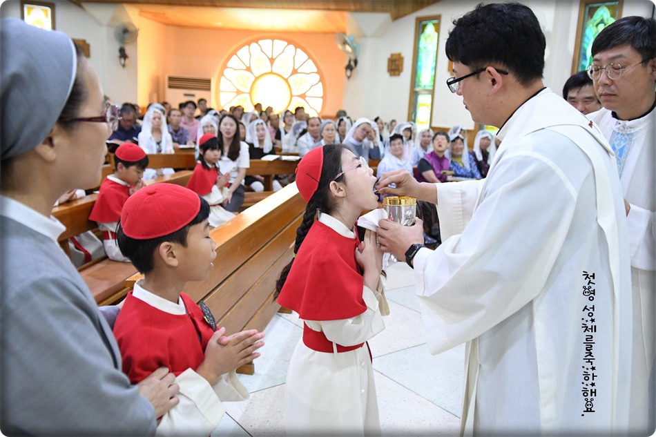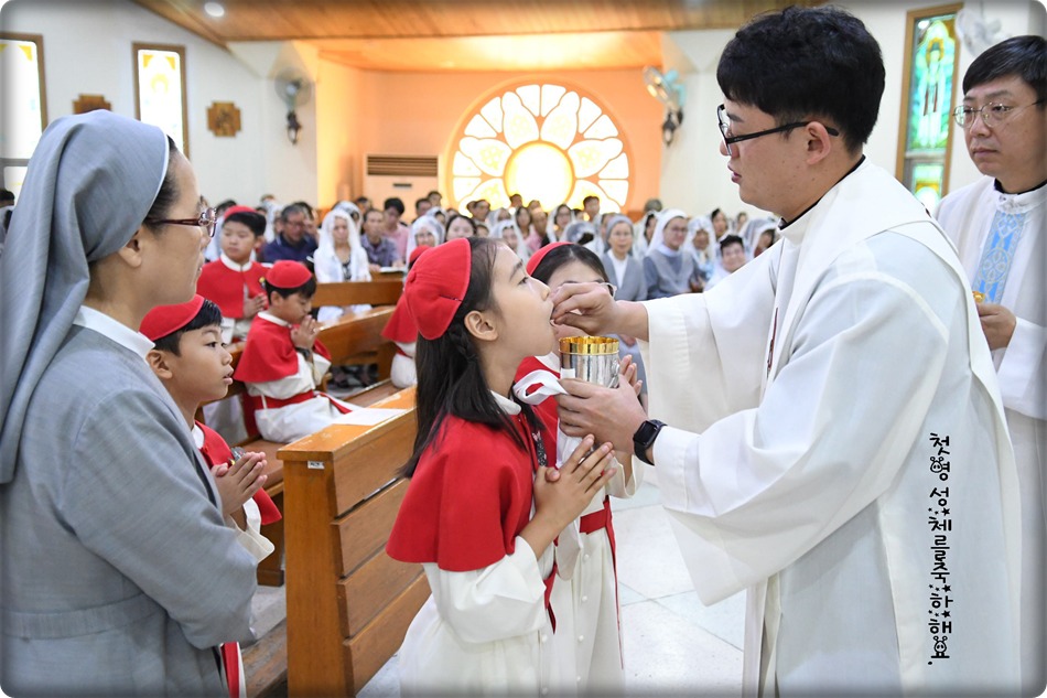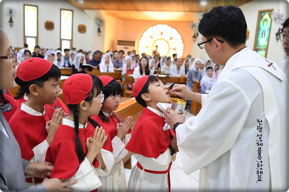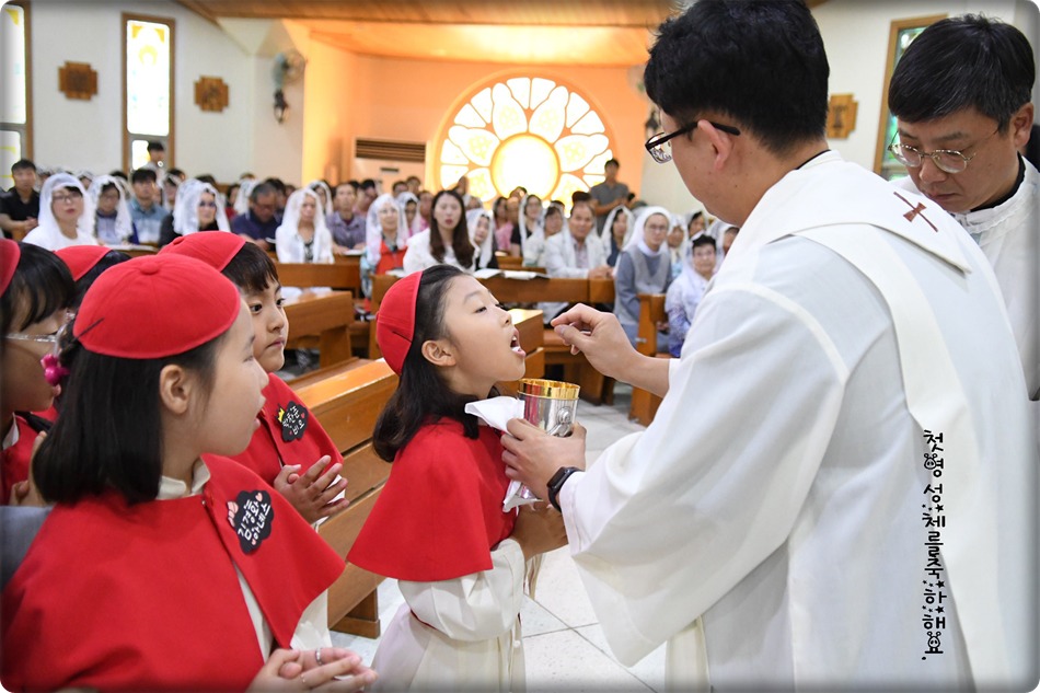 첫영성체 거룩한 순간의 사진 및 영상-지극히 거룩하신 성체 성혈 대축일 교중미사중 2019.06.23