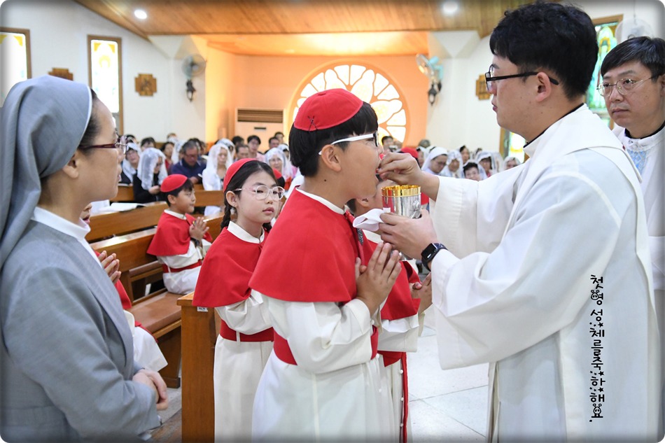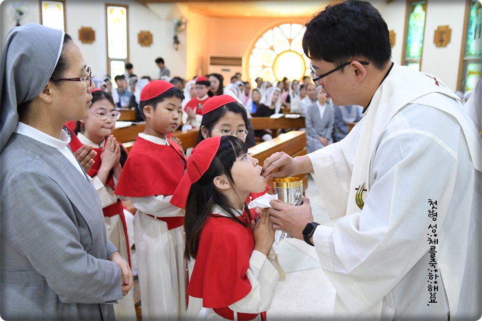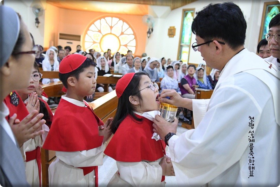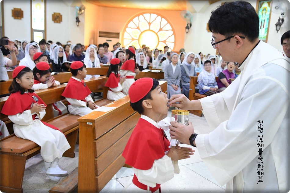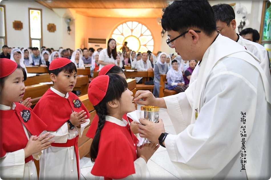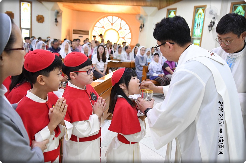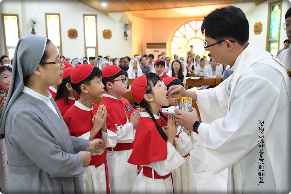 첫영성체 거룩한 순간의 사진 및 영상-지극히 거룩하신 성체 성혈 대축일 교중미사중 2019.06.23