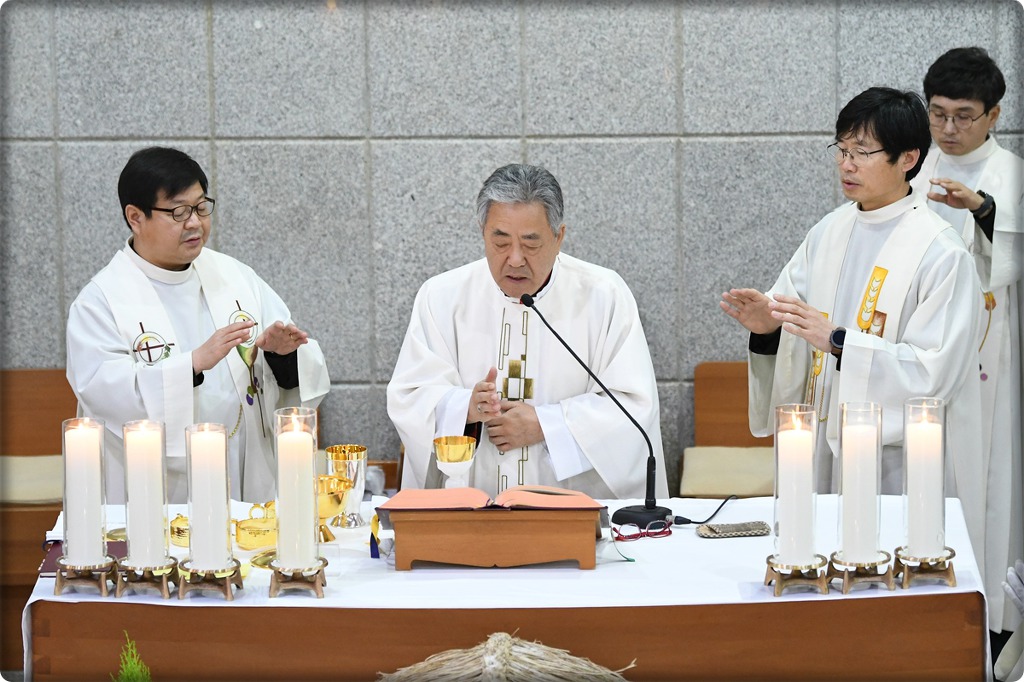 배기현 콘스탄틴 주교님께서 집전하시고 많은 신부님들께서 함께하신