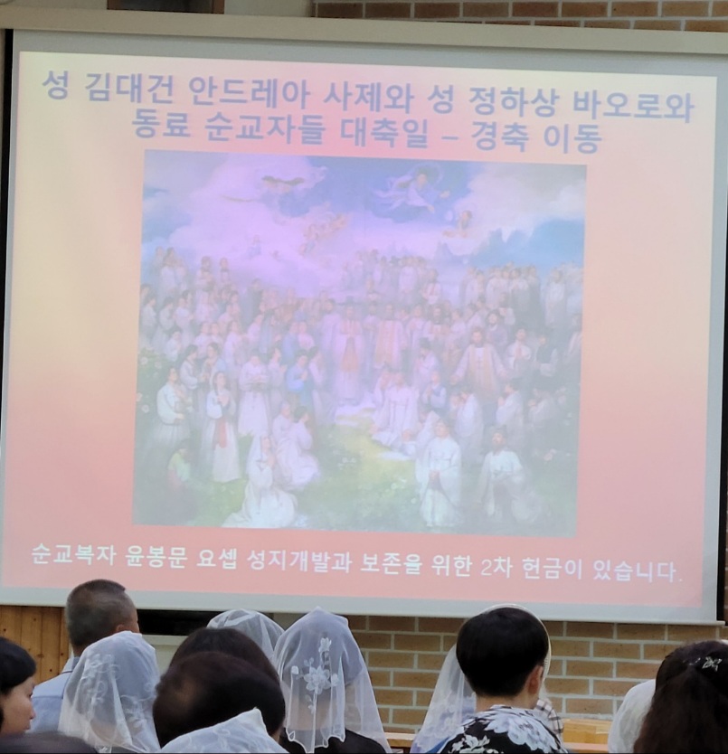 성 김대건 안드레아 사제와 성 정하상 바오로와 동요 순교자들 대축일 경축 이동 작성자김가롤로|작성시간23.09.17|조회수90 목록 댓글 0 글자크기 작게가 글자크기 크게가 9월20일(목) 성 김대건 안드레아 사제와 성 정하상 바오로와 동료 순교자들 대축일 경축 미사를 이동하여 9/17 교중미사에 대축일 미사로 진행 되었습니다. 다음검색 현재 게시글 추가 기능 열기 북마크 신고 센터로 신고 댓글 댓글 0 댓글쓰기 답글쓰기 댓글 리스트