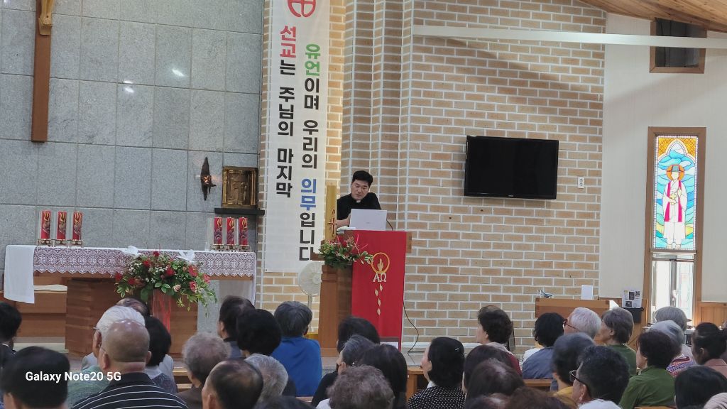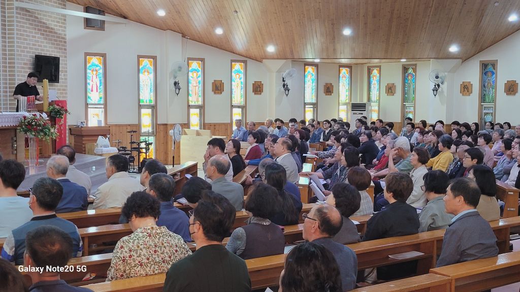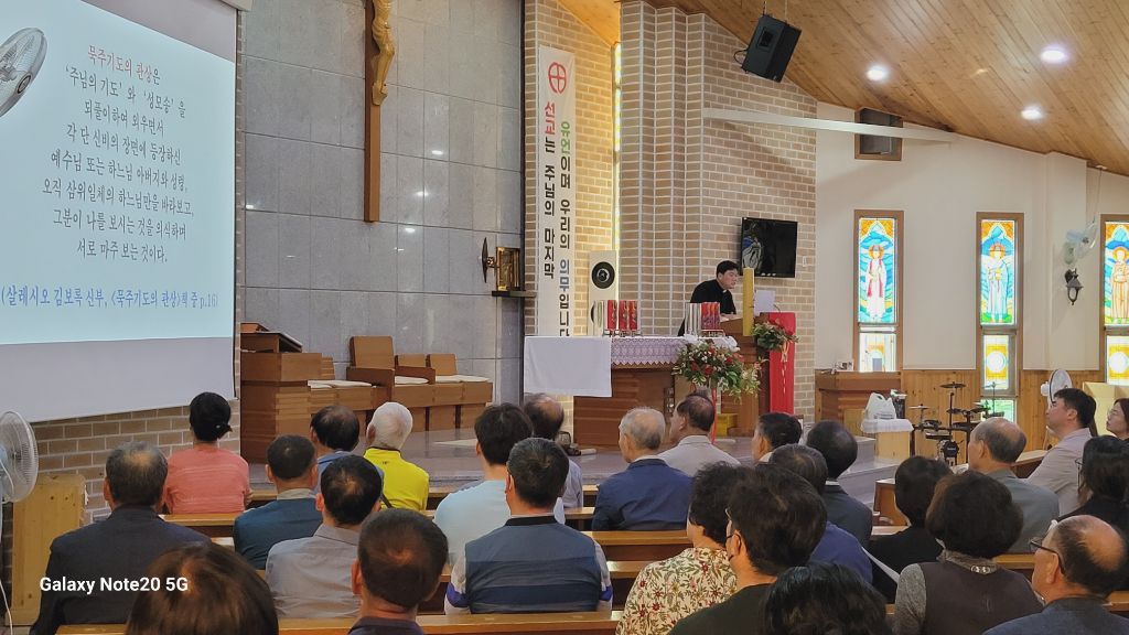 5/19 성령 강림 대축일 미사후 옥포성당에서 본당 박혁호 미카엘 주임 신부님을 강사으로 모시고 옥포, 장승포,지세포 성당 레지오 단원 의무교육을 [묵주기도의 묵상】주제로 신부님께서 2시간 동안 명강의를 해주셨습니다. 신부님 열성에 감사 드리며, 장시간 동안 교육 참석하신 세 꾸리아 간부님과 단원님들께 감사드립니다. 수고 하셨습니다.