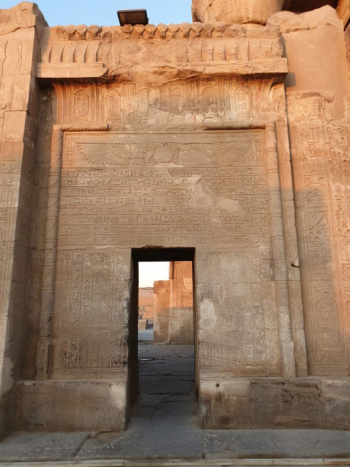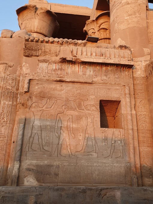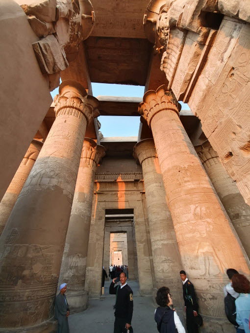아스완에서 출발한 크루즈가 처음 멈춘 곳은 콤 옴보였다. 배에서 내려 걸어갈만한 거리에 콤 옴보 신전이 있었는데 이 신전은 알렉산더 대왕의 점령으로 이집트 왕국이 멸망한 이후 등장한 프톨레마이오스 왕조나 그 이후인 로마 지배기에 해당하는 BC332년~395년 사이에 세워진 악어신 소벡(sobek)과 호루스에게 바친 신전으로 이중구조를 띤 드문 경우이다.