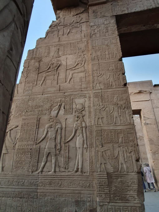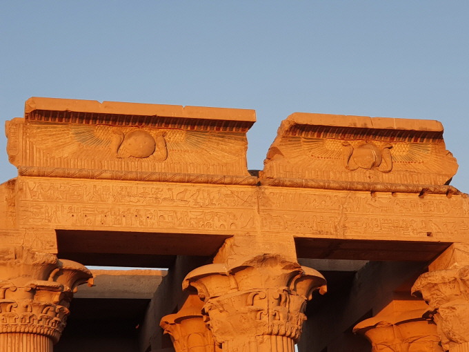 <이집트 신전에는 해독이 어려운 상형문자도 많지만 작은 그림들도 많아서 흥미롭다. 자세히 살펴보면 악어 신 소벡과 재생과 부활을 뜻하는 풍뎅이 그림들을 찾아볼 수 있다.>