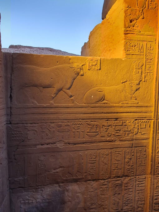 <황소는 호루스의 아내, 미의 여신 하토르인데 왕권 수호를 의미한다.>