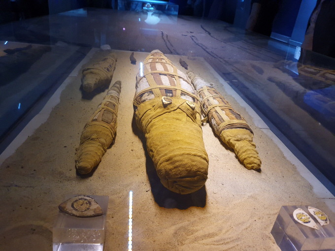 <악어 미라. 크고 작은 악어들을 미라로 만들어 박물관에서 전시 중이다.>