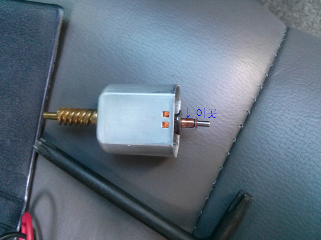 모터를 조립 하고 모터를 덥게에 장착 해서 도어를 리모컨을 이용해(문짝 도어 열림 스위치 눌러준 상태에서) 잠궜다 열었다 해보세요 힘있게 돌지만 모터에서 구리스가 타면서 연기가 나올거에요 단시간 돌아 가는 거라 모터에 무리는 없을거라 생각 됩니다. 문제는 얼마나 오래 사용 할수 있느냐 인데 사용하면서 지켜 봐야 겠습니다. 안돌면 모터 안에 저항이 있던 단자 접속 불량 일거에요.