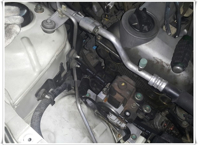 인젝터 선을 빼고 스타트 모터 힘으로 약간 엔진을 돌려주었습니다.
