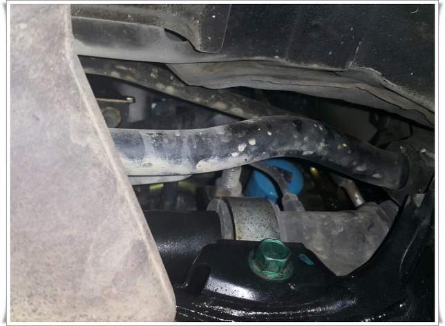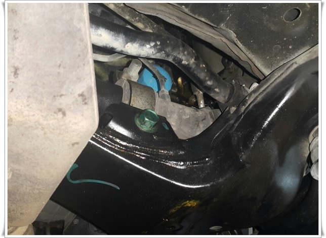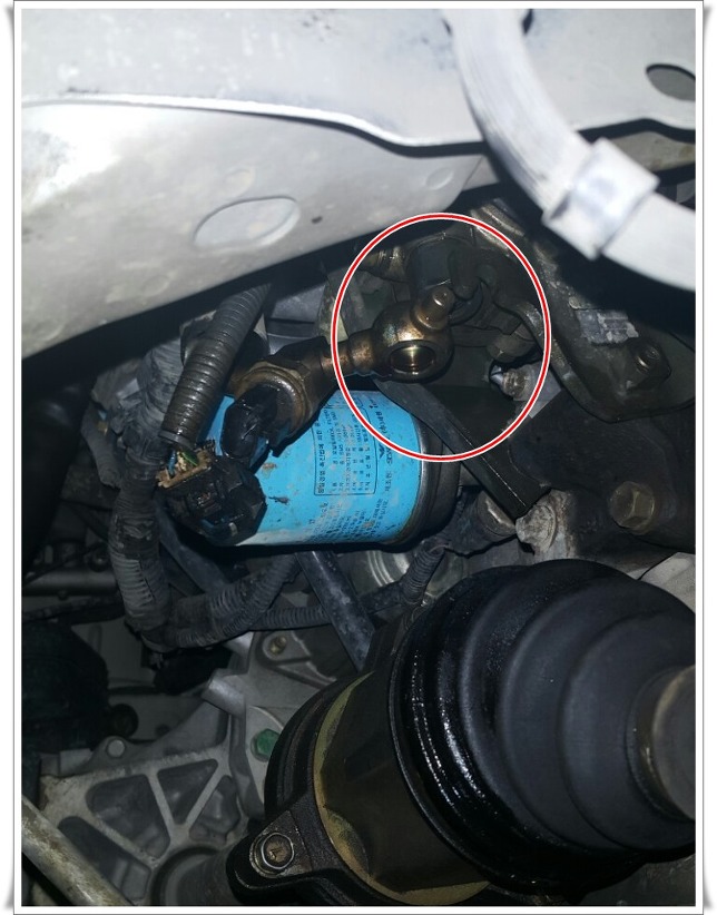 기어박스 부분 고압호스 고정 브라켓 볼트 탈착