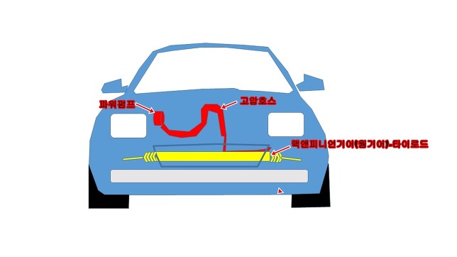 조금 지나니 똑같네요 .. 그리고 핸들을 최대한 돌리니 파워펌프가 약간 손상이