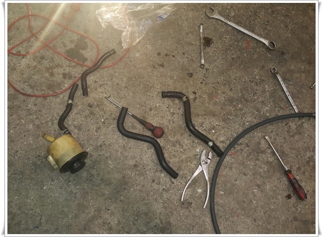 스티어링 기어박스 고압 공급 호스 볼트 탈착 ㅠㅠ