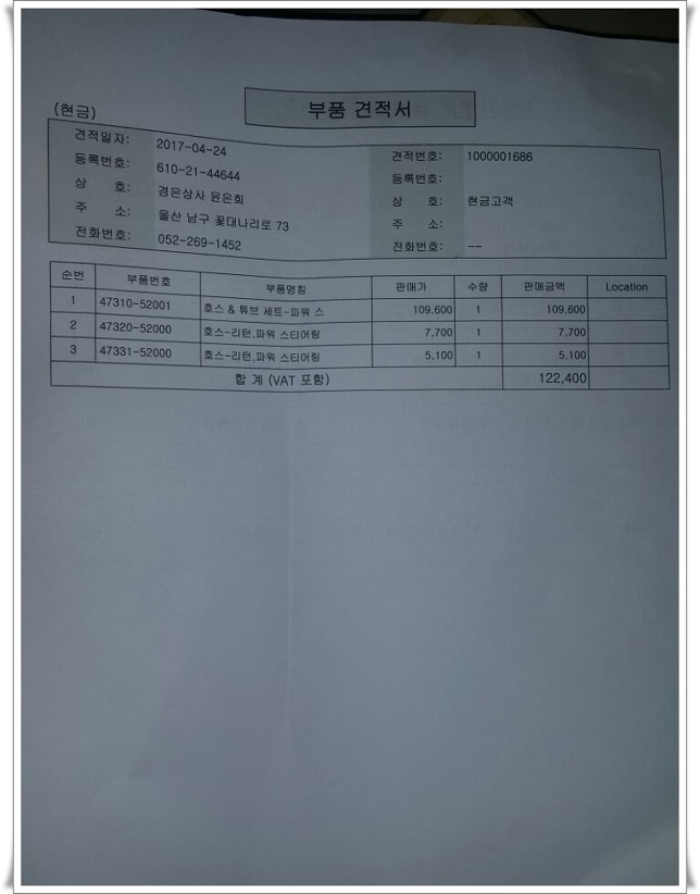 "고압호스가 나간거 같은데 수리비가 얼마인가요? "
