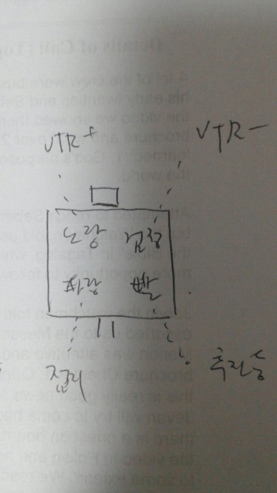 상단에 왼쪽에 파랑(VTR-), 오른쪽에 분홍(VTR+) 입니다.