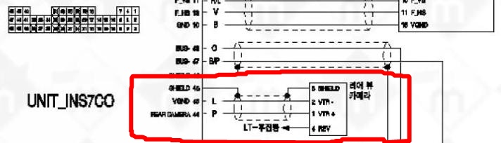 그리고 INS-700 회로도에서 발췌한 후방카메라 배선도 부분입니다.