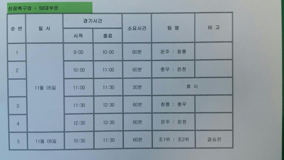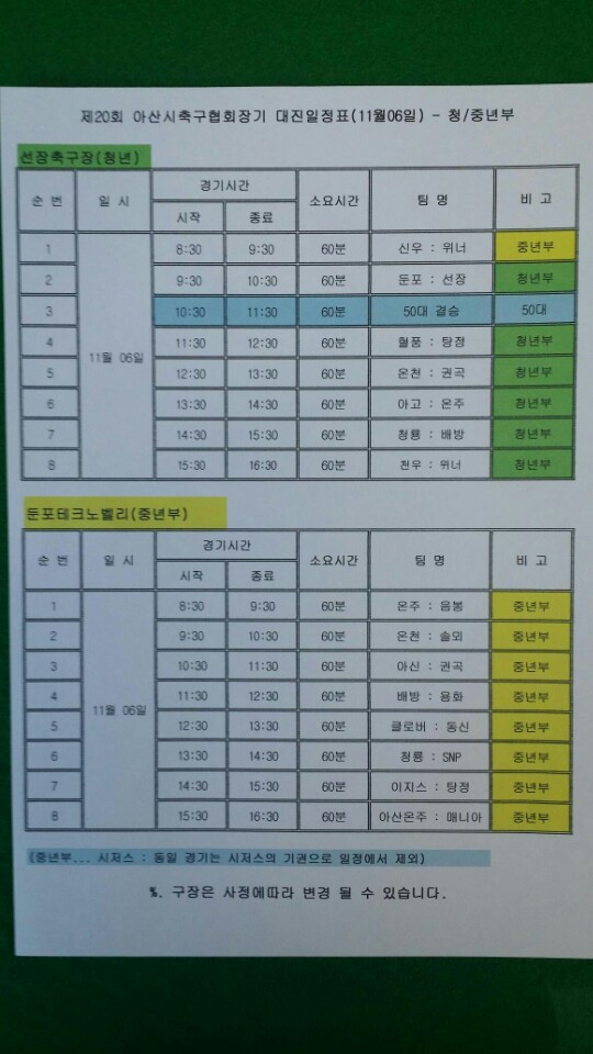 제20회 아산시축구협회장기 잔여경기 안내입니다 작성자우거지|작성시간16.10.24|조회수178 목록 댓글 0 글자크기 작게가 글자크기 크게가 다음검색 현재 게시글 추가 기능 열기 북마크 공유하기 신고 센터로 신고 댓글 댓글 0 댓글쓰기 답글쓰기 댓글 리스트