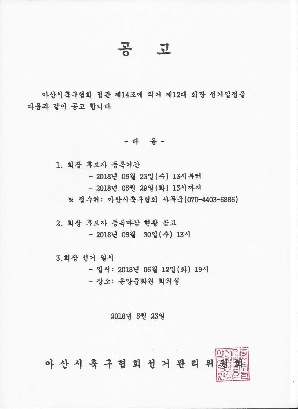 제12대 아산시축구협회장 선출 공고 작성자우거지|작성시간18.06.05|조회수107 목록 댓글 0 글자크기 작게가 글자크기 크게가 다음검색 현재 게시글 추가 기능 열기 북마크 공유하기 신고 센터로 신고 댓글 댓글 0 댓글쓰기 답글쓰기 댓글 리스트