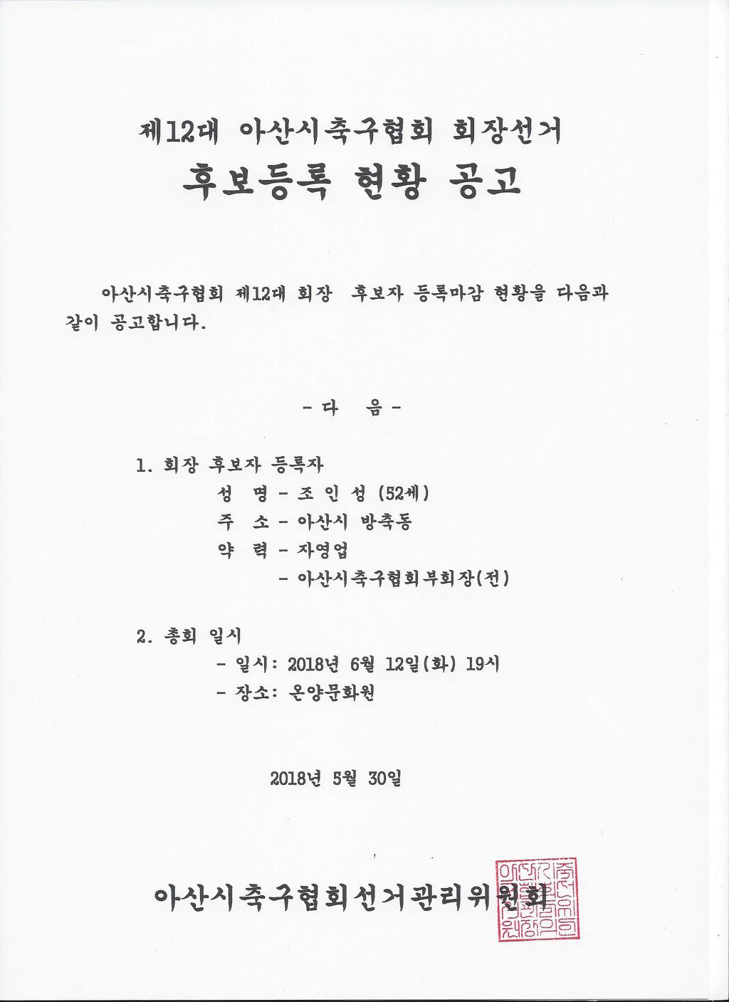 제12대 아산시축구협회장 후보등록 현황 공고 작성자우거지|작성시간18.06.05|조회수156 목록 댓글 0 글자크기 작게가 글자크기 크게가 다음검색 현재 게시글 추가 기능 열기 북마크 공유하기 신고 센터로 신고 댓글 댓글 0 댓글쓰기 답글쓰기 댓글 리스트
