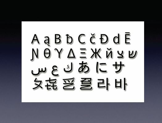 이 그림은 다양한 문자로 쓰여져 있습니다. 영어에서부터 한글까지 많은 문자들이 혼재해 있습니다. 이 문자들을 한 화면에 출력하는 일은 생각보다 쉽지 않은 일입니다. 여러 나라의 사람들이 한번에 모여 있을 때 서로 언어 전달이 힘든 것처럼 컴퓨터로 다양한 언어를 출력하는 것은 난해한 일입니다. 이런 문제를 해결하는 방법 중 하나가 UNICODE 입니다.