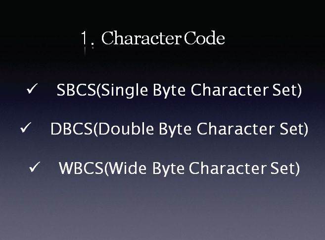 우선 문자 코드입니다. 문자코드에는 SBCS, DBCS, WBCS .