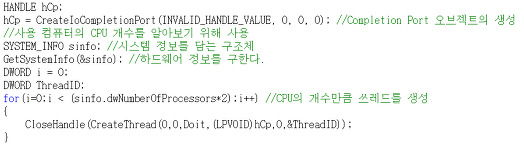 이때 for문안에 보면 sinfo.dwNumberOfprocessors*2 로 되어있는대 이건 마이크로소프트에서