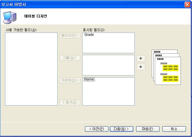 학년과 이름을 입력해서 학년으로 보고서가 작성되는 ReportView를 작성하였다.