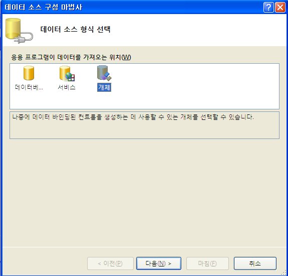 데이터베이스가 아니라 클래스를 가져오기 위해 개체를 선택한다. |