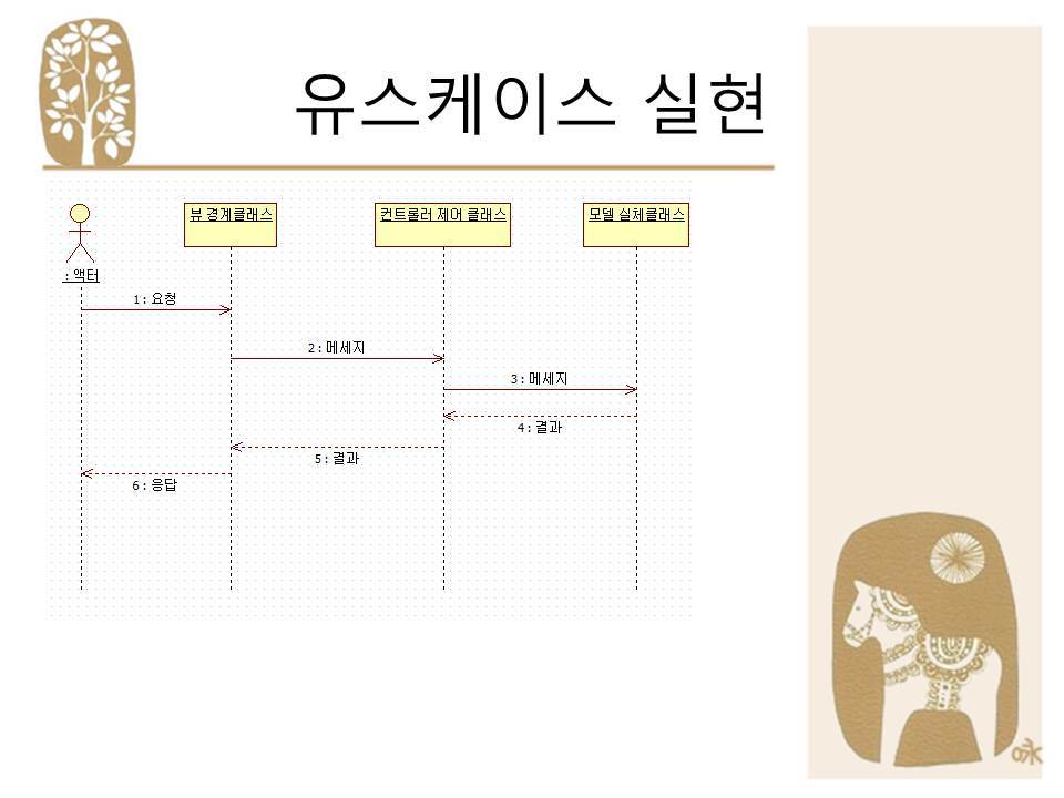 이러한 과정 속에서 우리는 분석 클래스라고 하는 개념적인 소프트웨어 요소를 찾아내게 되며, 유스케이스 실현은 이들 개념적인 소프트웨어 요소들이 어떻게 서로 상호작용하는지 방법을 표현함으로써 유스케이스의 목적을 달성합니다.