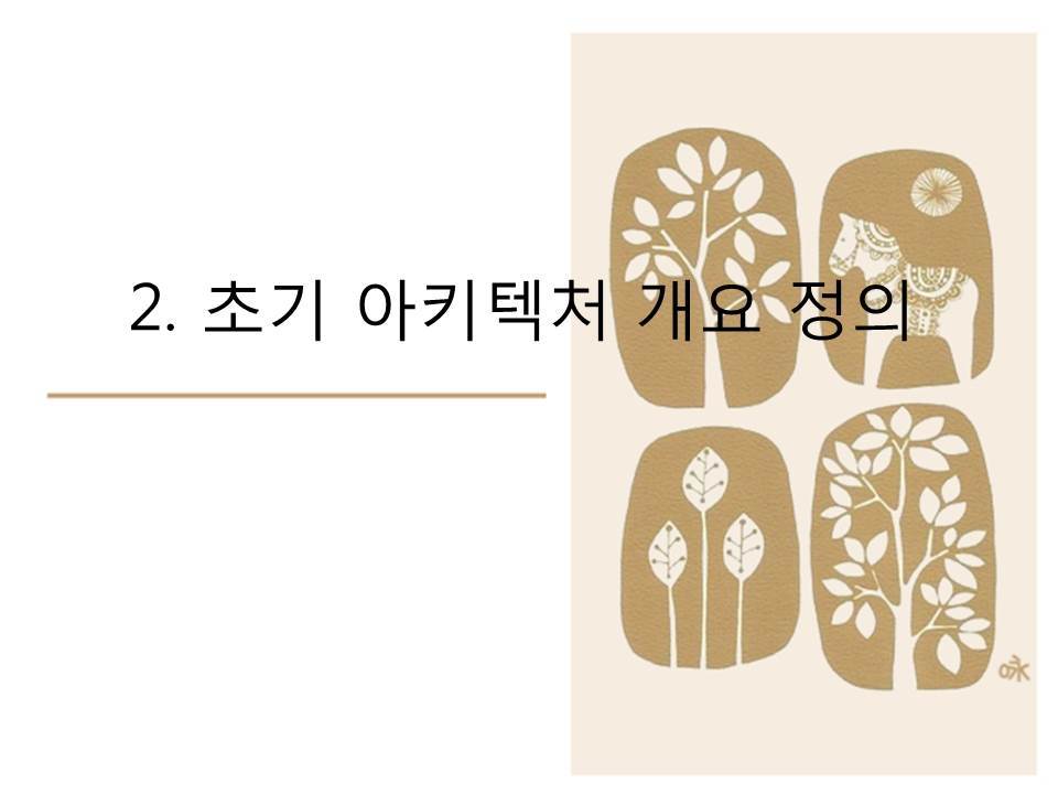초기 아키텍처 개요 정의는 사용자의 비기능적인 요구사항으로부터 품질 속성을 실현할 수 있는 전략을 수립하여 가장 실현 가능한 초기 아키텍처 개요를 정의합니다. 이때 생성된 초기 아키텍처 개요는 이후 아키텍처 설계를 위한 모든 과정의 기초가 됩니다. 또한 초기에 수립된 아키텍처의 세부적인 사항은 언제든지 변경가능합니다.