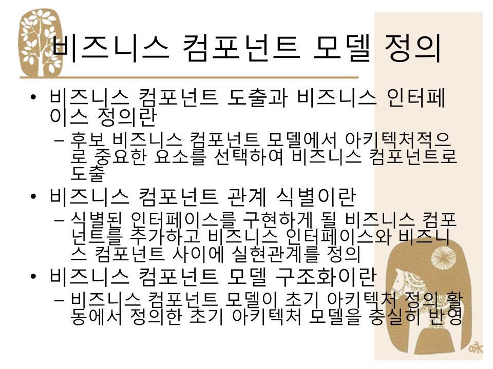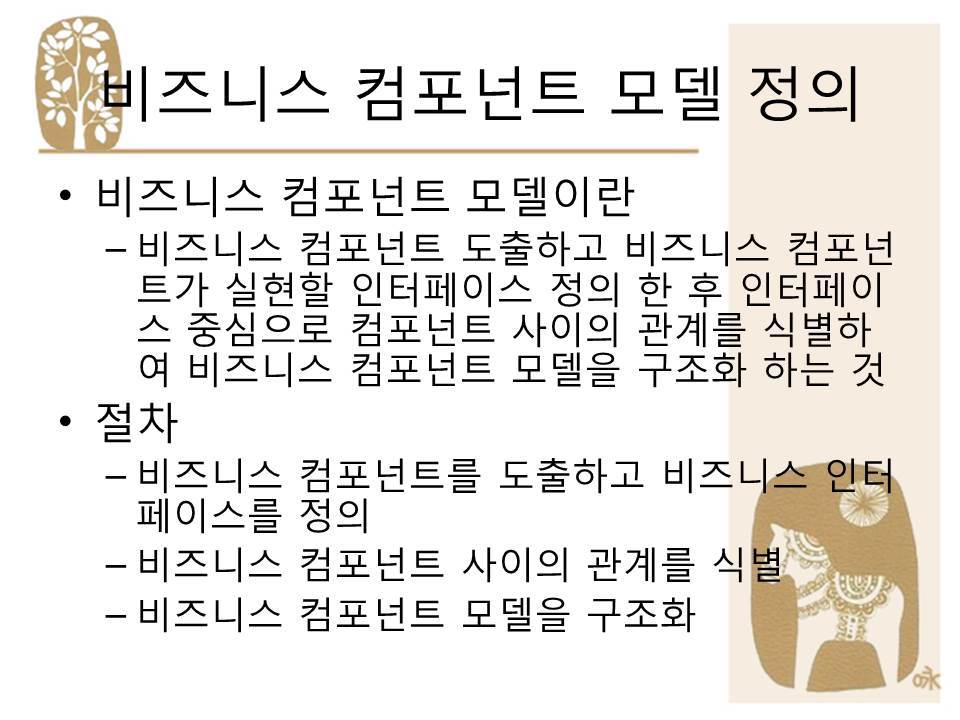 비즈니스 컴포넌트 모델 정의 작업의 마지막 절차는 비즈니스 컴포넌트 모델을 구조화 하는것이다.