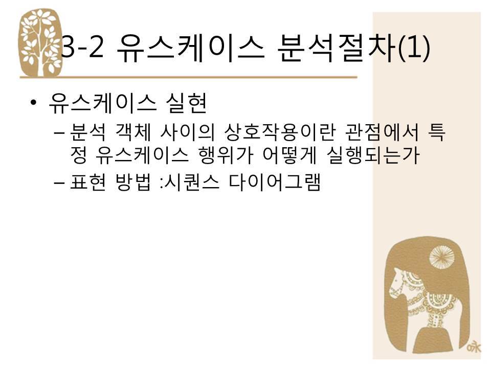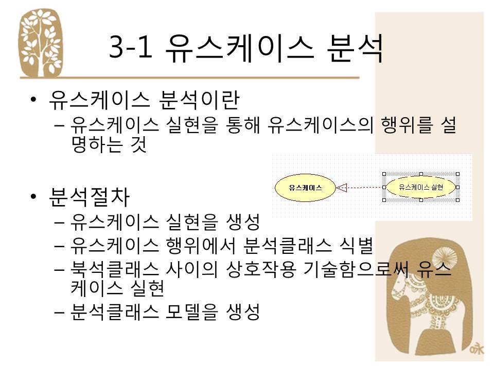 유스케이스 분석작업은 요구 파악 단계에서 도출된 각 유스케이스에 대하여 유스케이스 실현을 생성함으로써 시작한다.