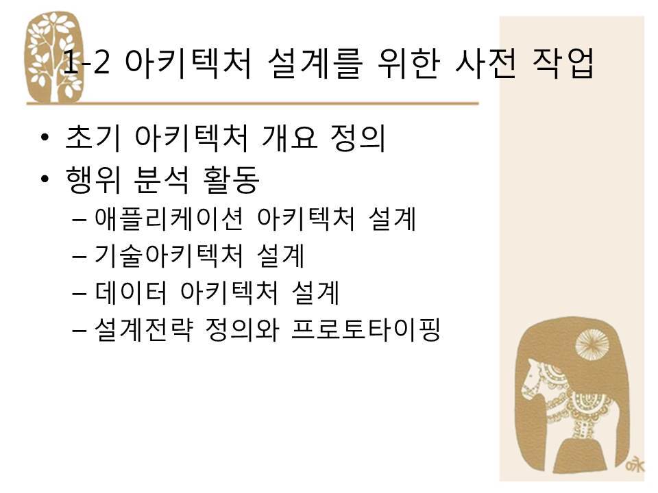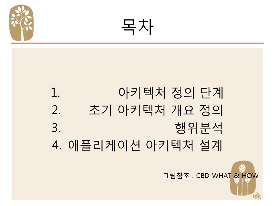 시스템의 소프트웨어 아키텍처를 설계하기 위해서는 사전 준비작업이 필요한데 그 사전 준비작업은 초기 아키텍처 개요를 정의하는 활동이며 두 번째는 행위분석 활동입니다.