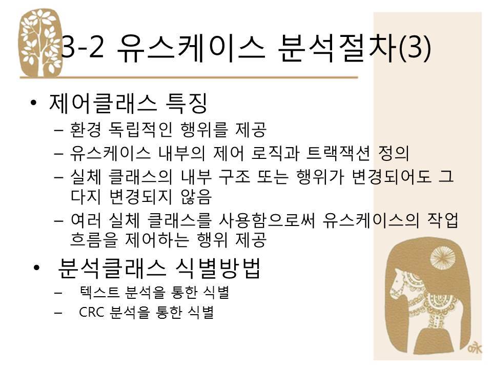 CRUD(Create,Read,Update/Delete) 유스케이스라면 제어클래스가 반드시 필요한것은아니다. 그러나 비즈니스 컴포넌트의 유력한 후보가 되므로 일단 도출하고 나중에 제외시킬 것을 고려하는 것이 좋다.