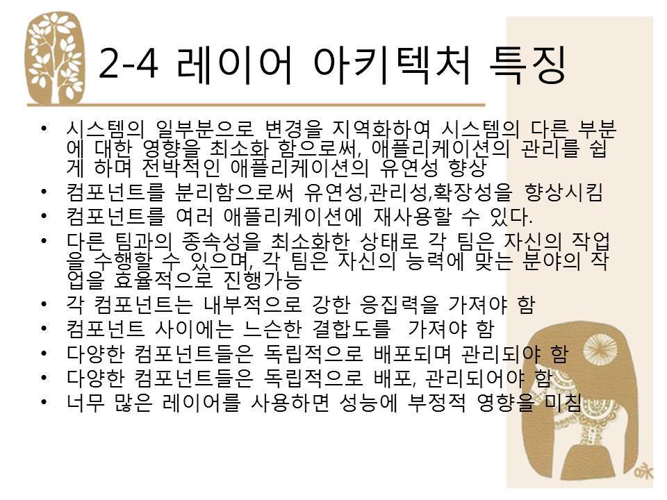 따라서 일반적으로 엔터프라이즈 시스템에 요구되는 관리성, 재사용성, 확장성, 강건성, 보안등의 요구사항을 지원하도록 컴포넌트를 구조화할 필요가 있다.