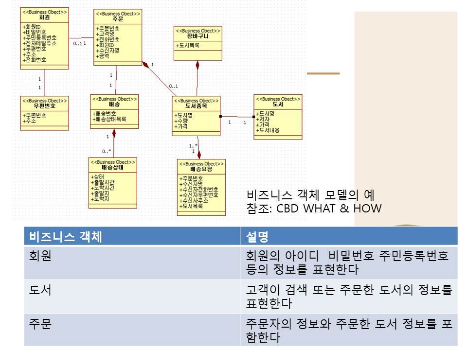업무 처리에서 중요한 개념을 갖는 비즈니스 객체를 도출하고, 이들 비즈니스 객체 사이의 관계 정의 한다.