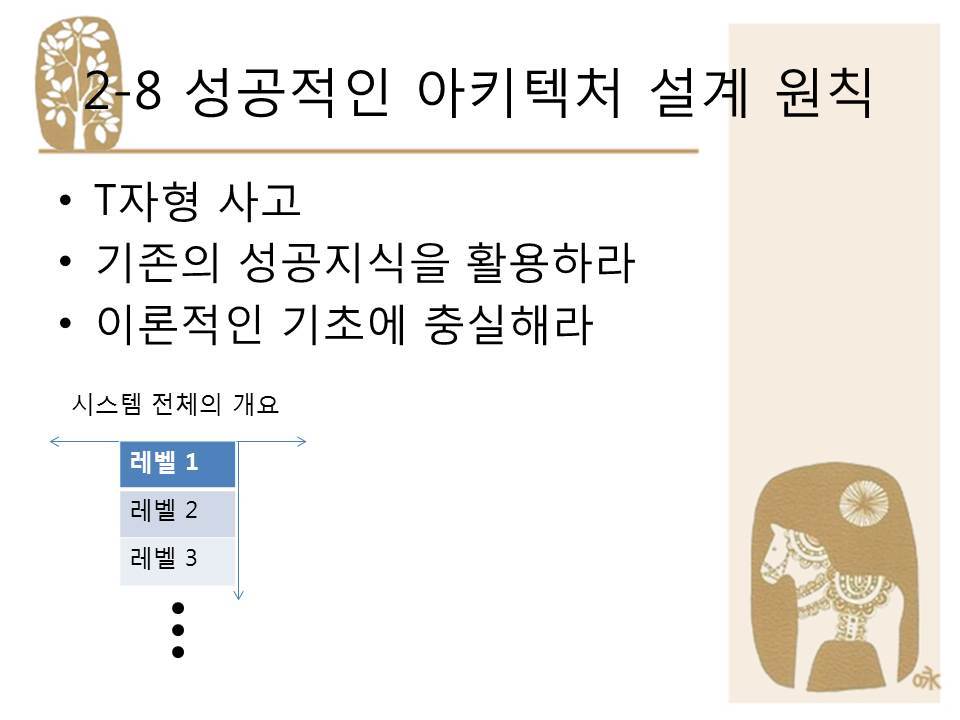 A. 아키텍처 스타일, 레퍼런스 아키텍처등은 수 많은 프로젝트 중 성공적으로 수행된 결과를 기반으로 재사용될 수 있도록 정의된것이다. 이러한 자산을 충분히 활용한다면 실패없는 견고한 아키텍처를 설게 할수 있게된다