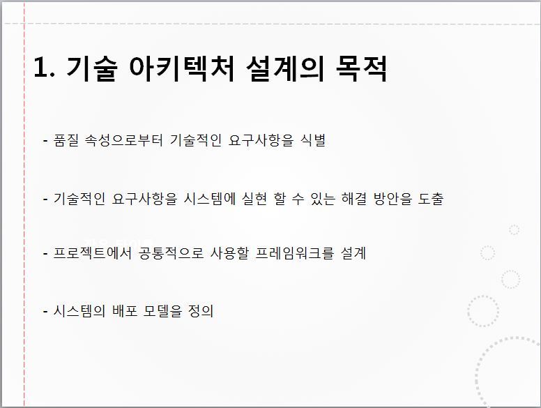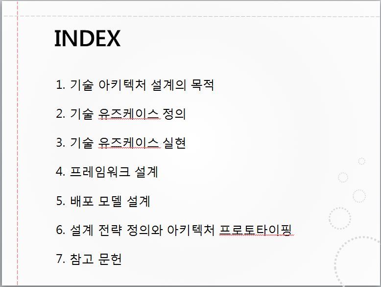 목차입니다. 기술 아키텍처 설계의 목적과 기술 아키텍처 설계 작업 절차인 기술
