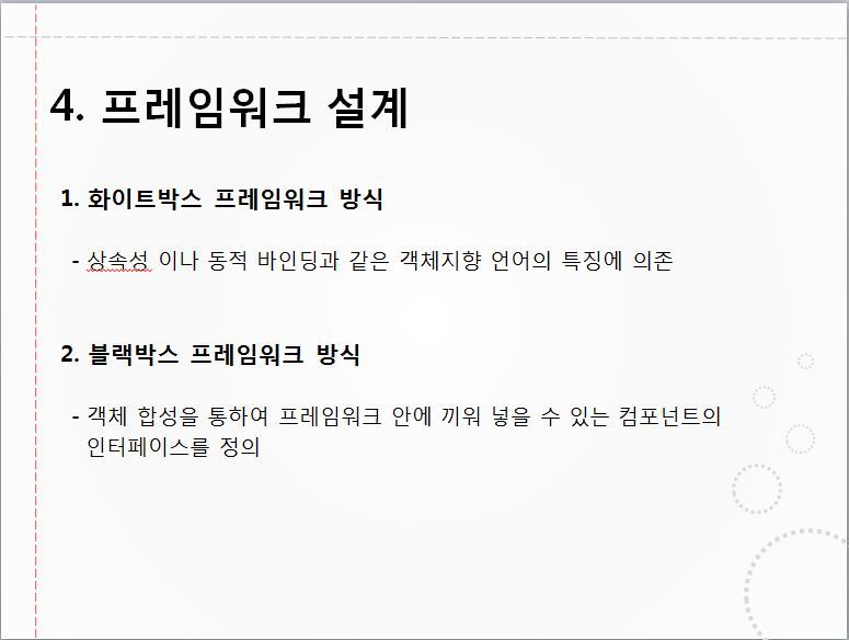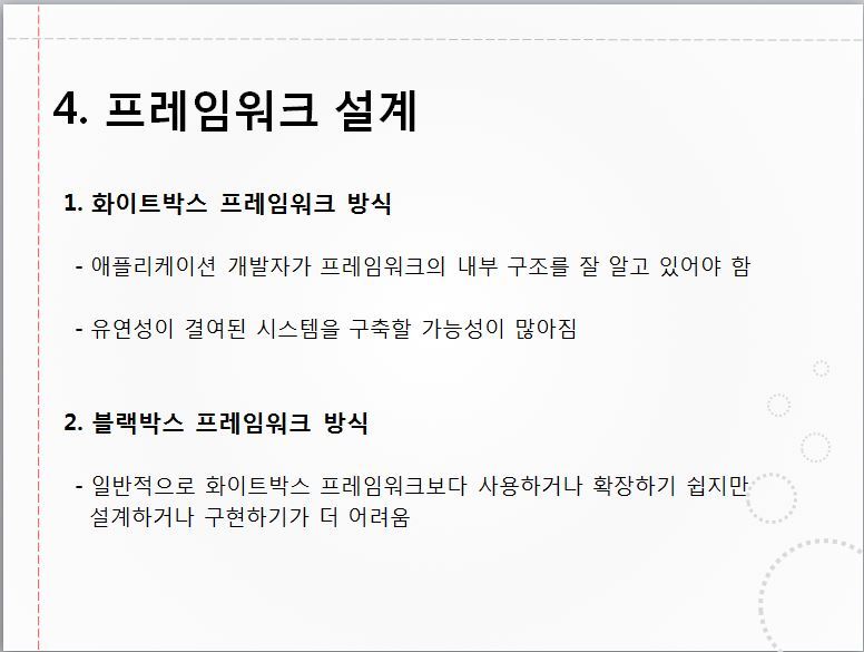 프레임워크 설계 방법에는 크게 화이트박스 프레임워크와 블랙박스 프레임워크