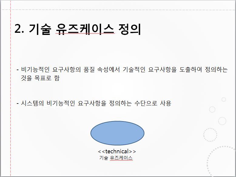 항을 정의하는 수단으로 사용한다면 기술 유즈케이스는 시스템의 비기능적인 요구