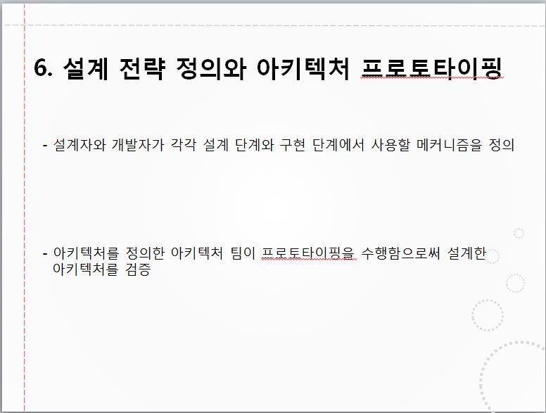 활동에서는 아키텍처를 정의한 아키텍처 팀이 프로토타이핑을 수행합으로써 설계한