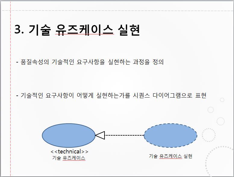 작업에서 도출한 기술적인 요구사항은 기술 유즈케이스를 사용하여 정의하는데 앞