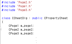 프로퍼티 시트클래스의 헤더파일에서 등록하고자 하는 페이지들을 include 해준후