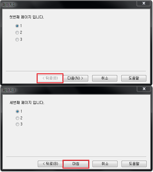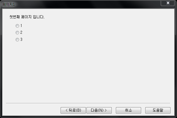 위저드 형식의 프로퍼티 시트는 위 그림과 같이 뒤로,다음 버튼을 가지고 있다.