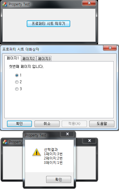 CPropertyPage는 CDialog에서 상속받아 대화상자를 만드는 방법 그대로 이용할 수 있습니다.