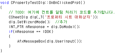1. 프로퍼티 시트를 생성하는곳에 SetWizardMode(); 함수를 이용하여 모드를 변경 해준다.