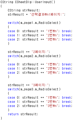 7. 각 프로퍼티 페이지에 멤버 변수를 지정해주고 입력된 결과들을 참조하여 리턴해주는 함수를 프로퍼티 시트에 만들어 준다